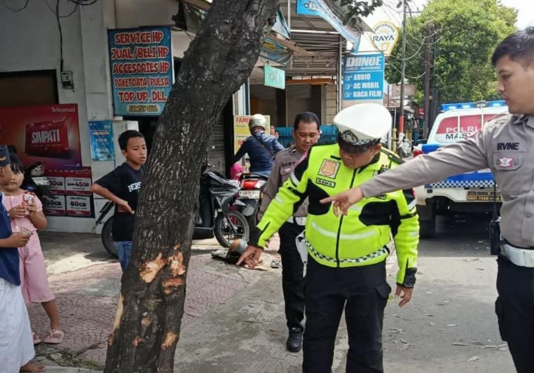 Namun saat tiba di lokasi kejadian, sepeda motor yang mereka tumpangi diduga tiba-tiba kehilangan kendali. Kendaraan tersebut oleng ke arah kiri sebelum akhirnya menabrak sebuah pohon yang berada di tepi jalan sebelah barat. Benturan keras pun tak dapat dihindari, membuat kedua korban terjatuh dan mengalami luka parah.